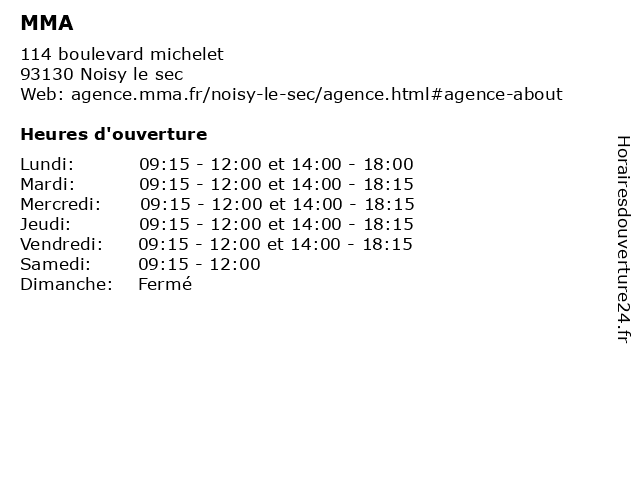 3 MMA (Distance: 4,37 km)16 boulevard de strasbourg, 93622 Aulany sous bois agence, assurance, mma