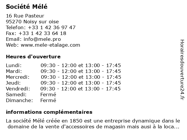 | Lundi | 09:30-12:00 et 13:00-17:45 |