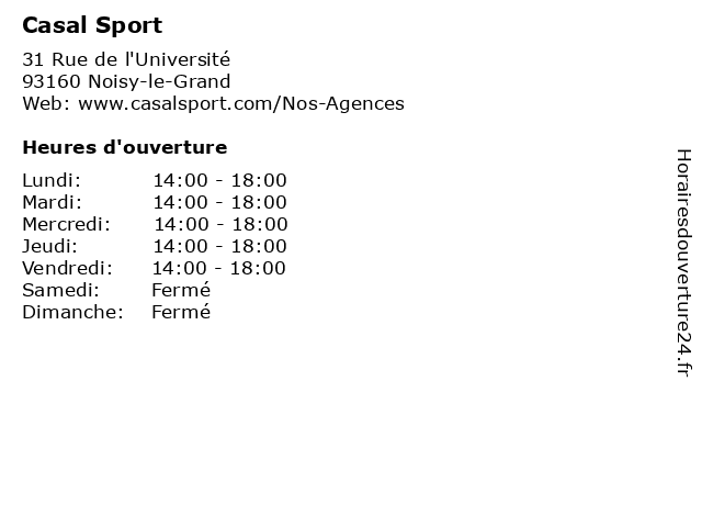 | Samedi | Fermé |