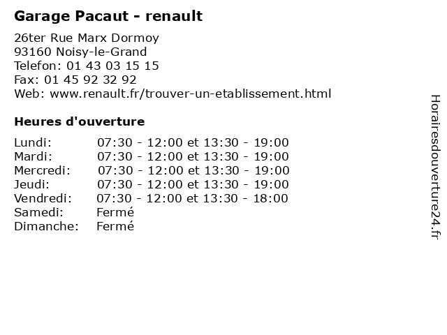 | Lundi | 07:30-12:00 et 13:30-19:00 |