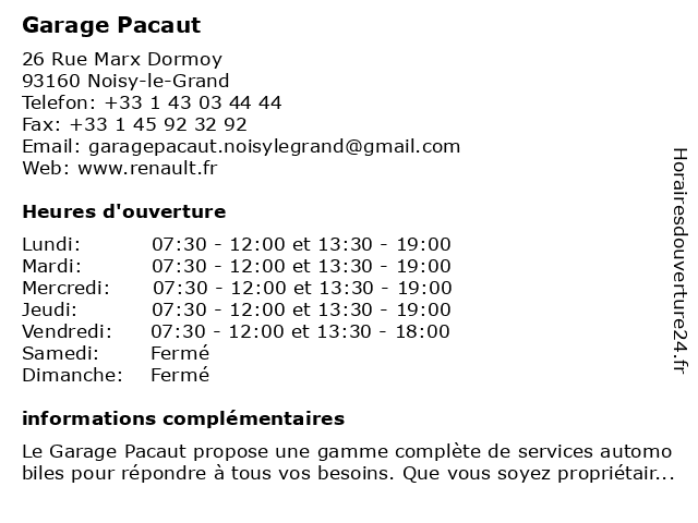 1 Garage Pacaut - renault (Distance: 0,28 km) 26ter Rue Marx Dormoy, 93160 Noisy-le-Grand atelier, automobile, concessionnaire, entretien, garage, pacaut, renault, réparation, vente 2 Maître Géraldine Pacaut - Avocate (Distance: 14,47 km) 5 Avenue de l'Opéra, 75001 Paris avocat, avocate, droit, géraldine, maître, négociation, pacaut 3 Karine Pacaut - Psychologue (Distance: 21,83 km) 5 Rue de la Prairie, 77700 Bailly-Romainvilliers folie, karine, pacaut, psychiatre, psychiatrie, psychiatrique, psychologue 4 Lorenove Paris Est (Distance: 0,26 km) 106 Avenue Georges Clemenceau, 94360 Bry-sur-Marne baie vitrée, baies coulissantes, coulissants, dépose totale, est, fenêtre, fenêtre alu, fenêtre bois, fenêtre mixte bois/alu, fenêtre pvc, fenêtres, lorenove, menuiserie, menuiseries, paris, persiennes, porte d'entrée, porte de garage, rénovation, store, volet, volets, volets roulants 5 Garage Du Lycée (Distance: 0,86 km) 78 Rue Pierre Brossolette, 93160 Noisy le Grand automobile, du, garage, lycée, peinture, voiture 6 Garage Avatacar (Distance: 1,76 km) 56 Rue Paul et Camille Thomoux, 93330 Neuilly sur Marne auto, avatacar, garage, pneus, réparation, révision |