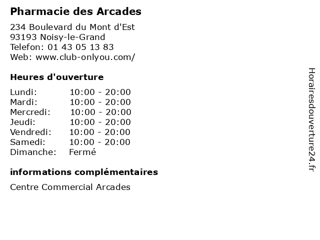 | Lundi | 10:00-20:00 |
