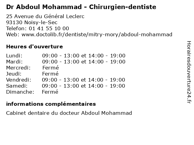| Lundi | 09:00-13:00 et 14:00-19:00 |