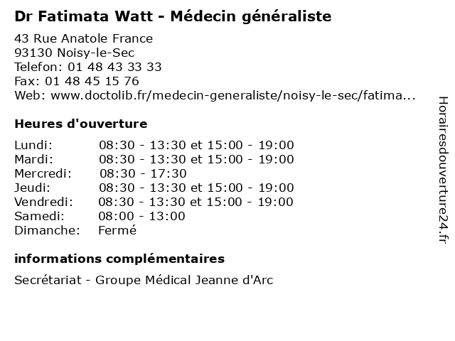 | Jeudi | 08:30-13:30 et 15:00-19:00 |
