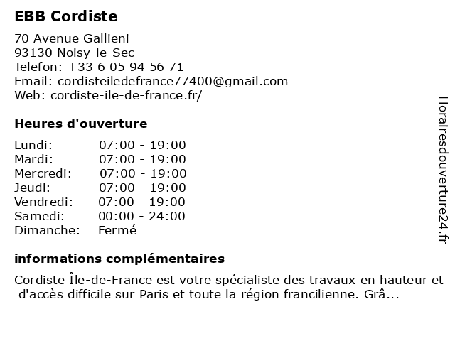 1 Cordiste Idf EBB (Distance: 5,30 km) 95 avenue du Président Wilson, 93108 Montreuil cleaner, cordiste, ebb, idf, maintenance, nettoyage, vitres 2 Eglise Evangélique Baptiste (EBB 93) (Distance: 9,72 km) 27-29 villa Joncherolles, 93200 Saint-Denis 93, baptiste, communautés religieuses, culte, ebb, eglise, evangélique, pasteur 3 SRS CORDISTE (Distance: 12,28 km) 150 Rue De L'université, 75007 Paris chauffagiste, cordiste, entrepreneur en peinture, magasin de matériel pour déménagement, menuisier-charpentier, restauration de bâtiments, srs, électricien 4 Gallego Nettoyage (Distance: 1,09 km) 21 Rue Edouard Vaillant, 93140 Bondy cleaner, cordiste, gallego, maintenance, nettoyage, vitres 5 Artisan Couvreur Dorkeld (Distance: 3,77 km) 73 rue Saint Antoine, 93100 Montreuil artisan, cordiste, couverture, couvreur, dorkeld, installateur, toitures, travaux 6 GD Couverture (Distance: 10,83 km) 13 Boulevard du Général Leclerc, 92110 Clichy cordiste, couverture, gd, installateur, toitures, travaux |