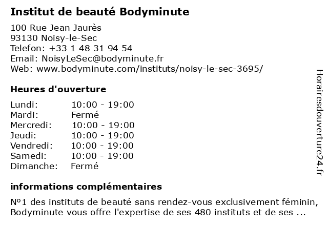 1 Institut de beauté Bodyminute (Distance: 1,85 km) 91 Rue Jules Guesde, 93140 Bondy beauté, bodyminute, de, institut 2 Institut de beauté Bodyminute (Distance: 1,89 km) Avenue du Général de Gaulle, 93117 Rosny-sous-Bois beauté, bodyminute, de, institut 3 Institut de beauté Bodyminute (Distance: 2,97 km) 57 Avenue Jean Jaurès, 93700 Drancy beauté, bodyminute, de, institut 4 Institut de beauté Bodyminute (Distance: 3,91 km) 31 Avenue de la Résistance, 93340 Le Raincy beauté, bodyminute, de, institut 5 Institut de beauté Bodyminute (Distance: 4,04 km) 22 Boulevard Rouget de Lisle, 93100 Montreuil beauté, bodyminute, de, institut 6 Institut de beauté Bodyminute (Distance: 4,12 km) 19 Rue du Pré Saint-Gervais, 93500 Pantin beauté, bodyminute, de, institut |