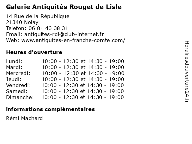 | Dimanche | 10:00-12:30 et 14:30-19:00 |