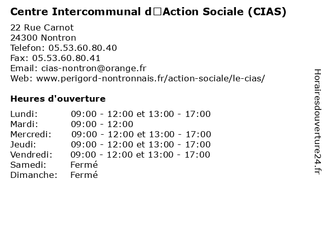 1 Mutualité sociale agricole (MSA) Nouvelle-Aquitaine (Distance: 0,02 km) 24 Rue Carnot, 24300 Nontron administration, agricole, aquitaine, assoc, msa, mutualité, nouvelle, services, services publics, sociale 2 Centre Intercommunal Action Sociale (Distance: 18,49 km) 10 Avenue André Maurois, 24310 Brantôme en Périgord action, centre, intercommunal, sociale 3 Action (Distance: 37,23 km) 21 Avenue Louis Suder, 24430 Marsac-sur-l'Isle action, discount, décoration, magasin, maison 4 Centre Communal d'Action Sociale (Distance: 37,49 km) - rue Venta de Baños, 24660 Coulounieix-Chamiers accompagnement, aide, ccas, centre, communal, consultation, d'action, rédaction de cv, sociale, suivi 5 Centre Communal d'Action Sociale - Service d'aide sociale (Distance: 39,02 km) 2 rue Charles Mangold, 24000 Périgueux aides, besoins, ccas, centre, communal, d'action, d'aide, handicapes, personnes ages, service, sociale 6 Centre Communale d'Action Sociale (Distance: 41,07 km) 1 rue des Grives Musiciennes, 16430 Champniers accompagnement, aide, centre, centre action sociale, communale, d'action, informations, sociale |