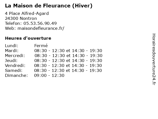 | Samedi | 08:30-12:30 et 14:30-19:30 |