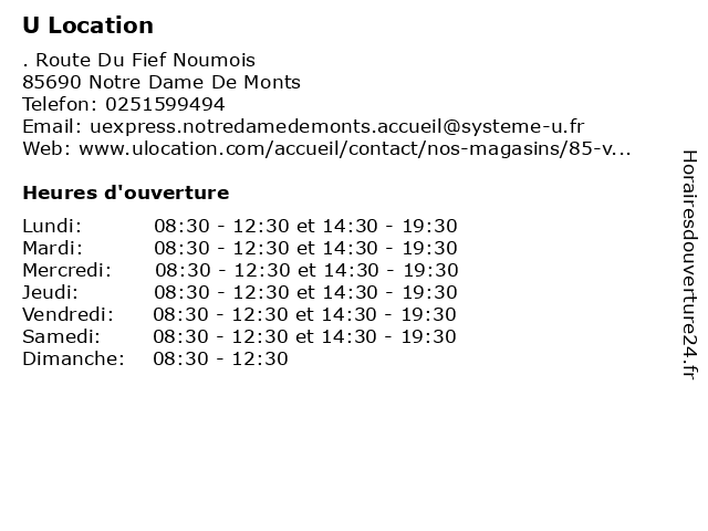 1 U Location (Distance: 11,34 km) . Route Des Sables, 85230 Beauvoir Sur Mer location, location de voiture, location de véhicules, super, véhicules 2 U Location (Distance: 17,19 km) 148 Route Nationale, 85740 Noirmoutier L'Epine location, location de voiture, location de véhicules, super, véhicules 3 U Location (Distance: 18,36 km) 140 Avenue de L’Isle de Riez, 85270 Saint Hilaire de Riez agence, location, utilitaires, véhicules 5 Super U Location (Distance: 7,40 km) . La Dechaume, 85160 Saint Jean De Monts location, location de voiture, location de véhicules, super, véhicules 6 CarGo Location de Véhicules BEAUVOIR SUR MER (Distance: 11,44 km) 22 Rue Henri Geoffroy, 85230 Beauvoir-sur-Mer beauvoir, cargo, de, location, mer, sur, véhicules |