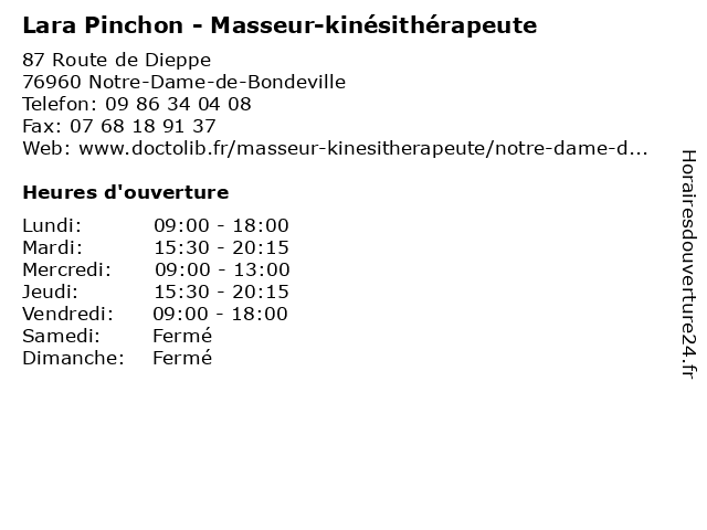 1 Maxence Rivard - Masseur-kinésithérapeute (Distance: 0,00 km) 87 Route de Dieppe, 76960 Notre-Dame-de-Bondeville docteur, kine, kinesitherapeute, kinésithérapeute, masseur, maxence, rivard 2 Heidi Hajouri - Masseur-kinésithérapeute (Distance: 0,00 km) 87 Route de Dieppe, 76960 Notre-Dame-de-Bondeville bien-être, en, forme, hajouri, heidi, kinésithérapeute, kinésithérapie, masseur, remise, rééducation 3 Anne-Sophie Prévinaire - Masseur-kinésithérapeute (Distance: 0,00 km) 87 Route de Dieppe, 76960 Notre-Dame-de-Bondeville anne, kiné, kinésithérapeute, masseur, prévinaire, rééducation, soin, sophie 4 Théo Krumholz - Masseur-kinésithérapeute (Distance: 0,73 km) 5 Impasse des Tisserands, 76150 Maromme docteur, kine, kinesitherapeute, kinésithérapeute, krumholz, masseur, théo 5 Raphael Colboc - Masseur-kinésithérapeute (Distance: 1,04 km) 568 Route de Dieppe, 76250 Déville-lès-Rouen colboc, docteur, kine, kinesitherapeute, kinésithérapeute, masseur, raphael 6 Victor Pinsard - Masseur-kinésithérapeute (Distance: 6,57 km) 47 Rue Moliere, 76000 Rouen docteur, kine, kinesitherapeute, kinésithérapeute, masseur, pinsard, victor |