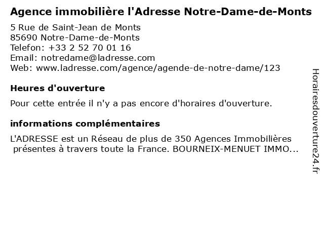 | Appeler Agence immobilière l'Adresse Notre-Dame-de-Monts | |