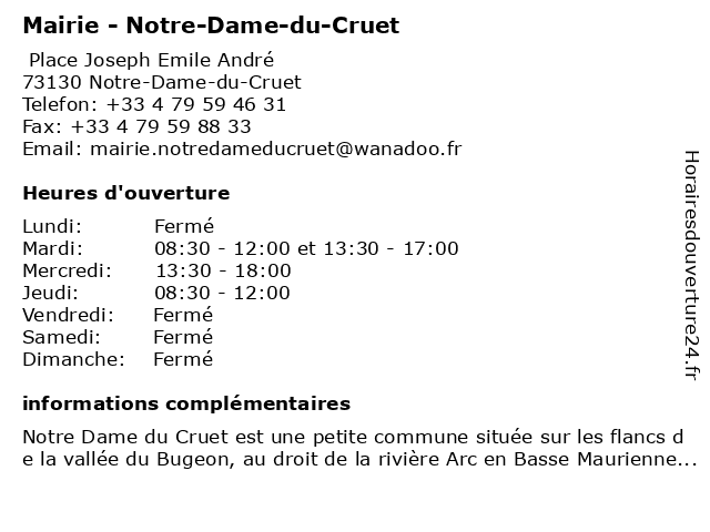 Termes de recherche pour Mairie - Notre-Dame-du-Cruet:du, dame, notre, mairie, cruet |