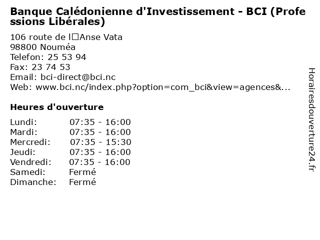Termes de recherche pour Banque Calédonienne d'Investissement - BCI (Professions Libérales):services, crédit, banque, financement, bancaires, bci, libérales, professions, caledonienne, d'investissement |
