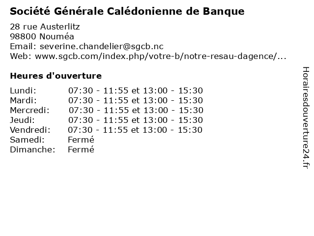 1 Société Générale Calédonienne de Banque (Distance: 0,32 km) 56 avenue Henri Lafleur Victoire, 98800 Nouméa assurances, banque, calédonienne, de, générale, société 2 Société Générale Calédonienne de Banque (Distance: 0,34 km) 6 Avenue Maréchal Foch, 98800 Nouméa assurances, banque, calédonienne, de, générale, société 3 Société Générale Calédonienne de Banque (Distance: 1,57 km) 10 rue Jules Garnier, 98800 Nouméa assurances, banque, calédonienne, de, générale, société 4 Société Générale Calédonienne de Banque (Distance: 1,75 km) 39 rue Louis Boucher, 98800 Nouméa assurances, banque, calédonienne, de, générale, société 5 Société Générale Calédonienne de Banque (Distance: 2,93 km) 103 route de l'Anse Vata, 98800 Nouméa assurances, banque, calédonienne, de, générale, société 6 Société Générale Calédonienne de Banque (Distance: 3,99 km) 1 rue Seguin, 98800 Nouméa assurances, banque, calédonienne, de, générale, société |
