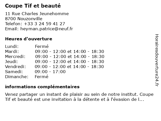 | Mardi | 09:00-12:00 et 14:00-18:30 |