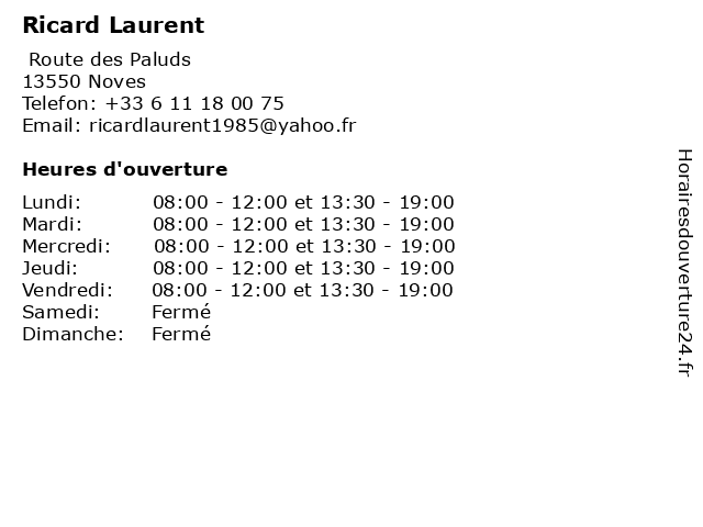 | Mercredi | 08:00-12:00 et 13:30-19:00 |