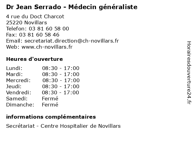 1 Dr Françoise Serrado-Paineau - Psychiatre (Distance: 0,00 km) 4 rue du Doct Charcot, 25220 Novillars consultation, docteur, dr, francoise, françoise, med, medecine, medical, médecin, paineau, psychiatre, serrado, traitement 2 Dr Claire Serrado-Parizet - Radiologue (Distance: 13,57 km) - Rue Auguste Rodin, 25000 Besançon claire, diagnostique, dr, imagerie, parizet, radiologie, radiologue, serrado, thérapeutique 3 Adecco Medical Besançon (Distance: 8,62 km) 31 Avenue Carnot, 25000 Besançon adecco, agences, besançon, cdd, cdi, emploi, emploi intérim, medical, services 4 Etablissement Francais Du Sang (Distance: 8,87 km) n/a Haut, 25000 Besançon blood donations, du, etablissement, francais, hospital, medical, office, practical advice, sang 5 Domidom (Distance: 9,08 km) 20 Faubourg Rivotte, 25000 Besançon aide à domicile, alzheimer, domidom, dépendance, medical, services 6 cabinet medical arteria - Médecine générale (secrétariat ) (Distance: 9,35 km) 49 grande rue, 25000 Besancon arteria, cabinet, consultation, docteur, générale, medical, médecine, santé, secrétariat |