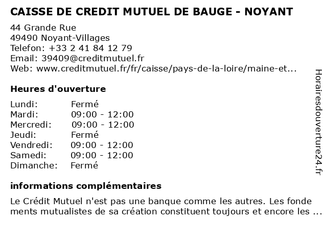 Termes de recherche pour CAISSE DE CREDIT MUTUEL DE BAUGE - NOYANT:de, crédit, mutuel, caisse, baugé, noyant |