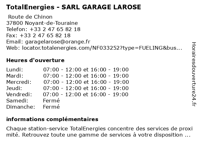 Termes de recherche pour TotalEnergies - SARL GARAGE LAROSE:garage, sarl, total, larose, gas station, station service, tankstelle, totalenergies |