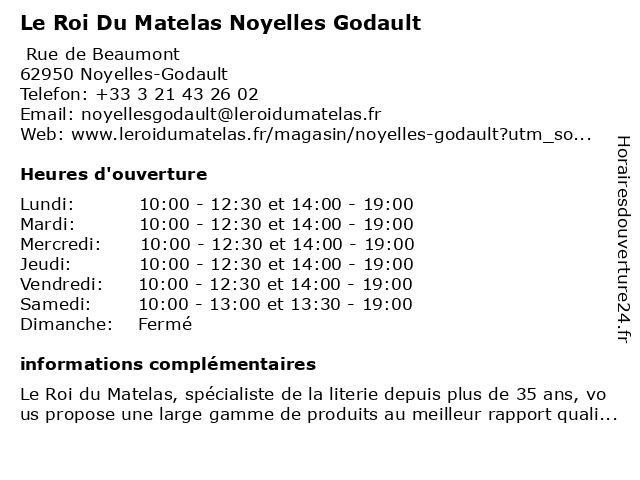 1 Le Roi du Matelas (Distance: 0,89 km) - Route Nationale 43, 62950 Noyelles-Godault du, d’accessoires, le, maison, marques de sommiers, matelas, roi 2 Matelas Mousse SARL (Distance: 6,10 km) Rue René Panhard, 59128 Flers-en-Escrebieux matelas, mousse, sarl 3 Le Roi Du Matelas Dechy (Distance: 11,53 km) Rue James Tobin, 59187 Dechy dechy, du, le, matelas, roi 4 Au Roi De La Biere (Distance: 16,43 km) 1 Rue Georges Lefebvre, 59151 Arleux ansart, biere, boissons, david, débits, roi 5 Le Roi du Matelas (Distance: 19,76 km) 43 Route Nationale, 62950 Noyelles auchan, centre, commercial, du, le, matelas, noyelles, roi 6 Literie 62 (Distance: 0,89 km) - Route Nationale 43, 62950 Noyelles-Godault 62, banquettes lits, chambres, literie, matelas et sommiers, oreillers et couettes, relaxation |