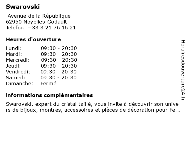 3 Swarovski (Distance: 25,41 km) - Rue du Ventoux, 59650 Villeneuve-d'Ascq bijoux, mode femmes, montres et accessoires, swarovski 4 Swarovski (Distance: 25,50 km) 39-45 Rue Nationale, 59000 Lille bijouterie, bijoux, cadeaux, créateurs, magasin, swarovski 5 Swarovski Retail Store Lille (Distance: 25,89 km) 32-34 Rue de la Grande Chaussee, 59000 Lille business, clothing, lille, retail, shopping, store, stores, swarovski 6 Swarovski (Distance: 25,90 km) 100 Avenue Willy Brandt, 59777 Lille bijouterie, bijoux, cadeaux, créateurs, magasin, swarovski |