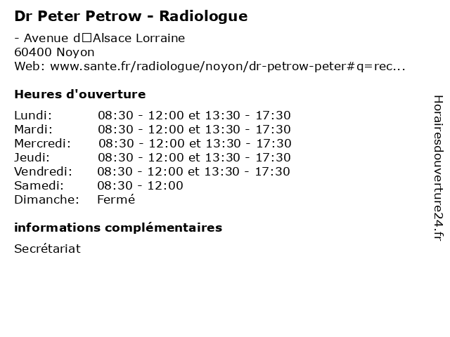 | Lundi | 08:30-12:00 et 13:30-17:30 |