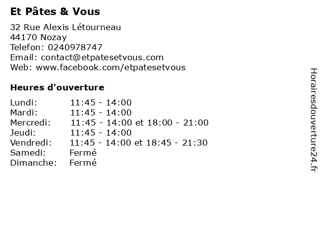 | Mercredi | 11:45-14:00 et 18:00-21:00 |