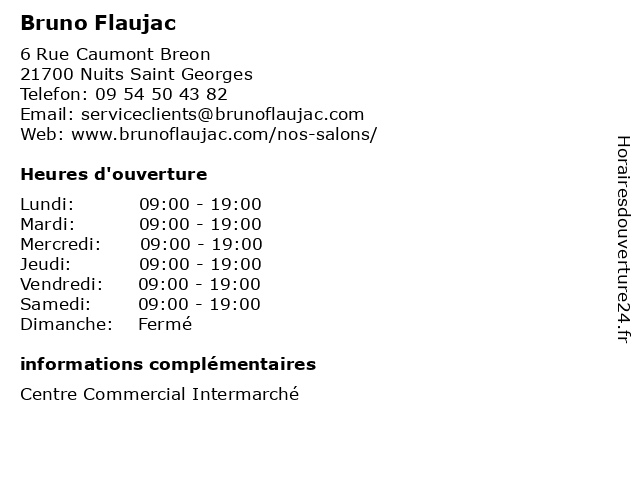 1 Bruno Flaujac (Distance: 16,23 km) 9 Avenue du Général de Gaulle, 21200 Beaune beauté, bruno, cheveux, coiffeurs, coiffure, flaujac, salon, soins 3 Cordon Bruno (Distance: 0,46 km) 7 Place De La Republique, 21700 Nuits St Georges bruno, cordon, restaurants 5 Pothier Bruno (Distance: 18,93 km) Arts Et Saveurs, 21190 Mavilly Mandelot bruno, pothier, restaurants 6 Dr Bruno Louis - Médecin généraliste - secrétariat (Distance: 20,86 km) 32 Boulevard de l'Université, 21000 Dijon bruno, consultation, docteur, dr, généraliste, louis, med, médecin, médecine, publiques, secrétariat, traitement |