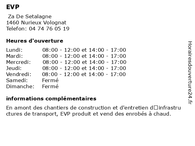 | Lundi | 08:00-12:00 et 14:00-17:00 |