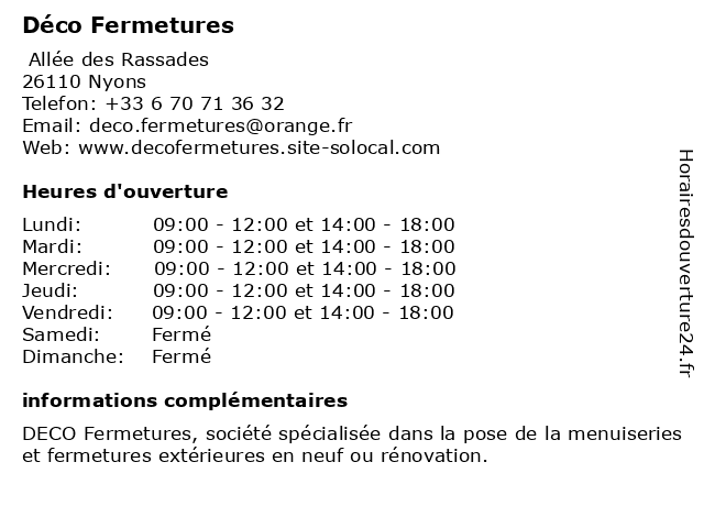 Lundi | 09:00-12:00 et 14:00-18:00 |
