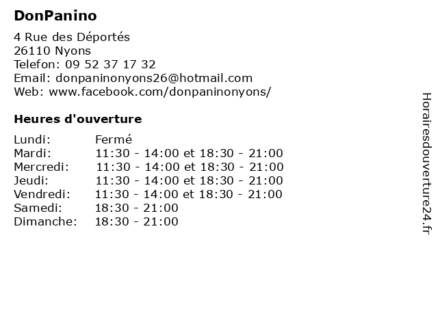 | Mercredi | 11:30-14:00 et 18:30-21:00 |