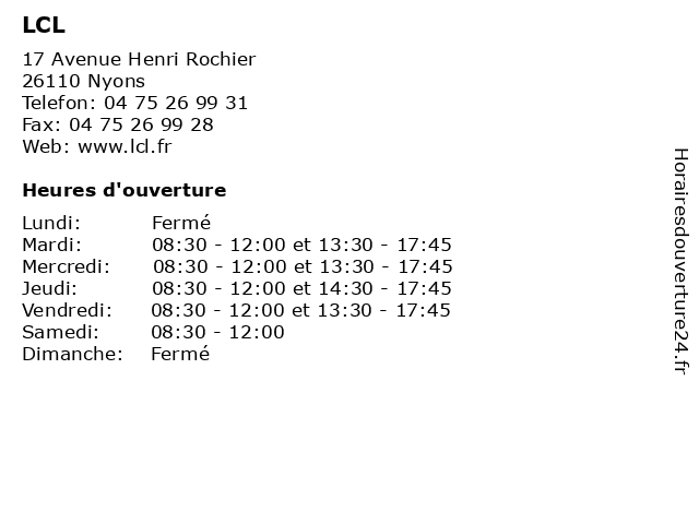 1 2 LCL (Distance: 14,29 km) 67 Grande Rue, 84110 Vaison-la-Romaine agence, assurance, bancaire, banque, lcl 3 LCL (Distance: 29,52 km) 14 Place du Marché, 26130 Saint-Paul-Trois-Châteaux agence, assurance, bancaire, banque, lcl 4 LCL (Distance: 34,97 km) - Place du Champ de Mars, 26700 Pierrelatte agence, assurance, bancaire, banque, lcl 6 LCL (Distance: 39,22 km) 7 Rue Frédéric Mistral, 07700 Bourg Saint-Andéol agence, assurance, bancaire, banque, lcl |