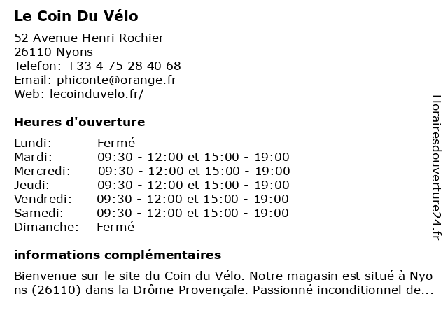 Jeudi | 09:30-12:00 et 15:00-19:00 |