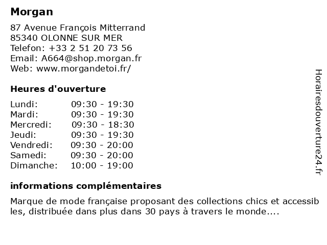 1 Morgan (Distance: 18,78 km) Route De Nantes, 17138 PUILBOREAU blazer femme, cardignan femme, chaussures femme, gilet femme, jean femme, magasin femme, magasin vêtements, manteau femme, mode femme, morgan, pull femme, robe femme, sac femme, t-shirt femme, tailleur femme, top femme, vêtements femmes 2 Morgan - Hiver (Distance: 0,50 km) 87 Avenue François Mitterrand, 85340 Olonne-sur-Mer centre, commercial, hiver, leclerc, les, mer, morgan, olonne, olonnes, sur 3 Morgan - Été (Distance: 0,50 km) 87 Avenue François Mitterrand, 85340 Olonne-sur-Mer centre, commercial, leclerc, les, mer, morgan, olonne, olonnes, sur, été 4 Ferreira Lopes Morgan Serge Cantor (Distance: 2,15 km) 60 Rue Des Branches, 85100 Les Sables D Olonne cantor, ferreira, lopes, morgan, restaurants, serge 5 Naf Naf (Distance: 0,49 km) 87 avenue François Mitterrand, 85340 Les Sables-d'Olonne blouses, chemisse, naf, robes, top 6 OKAIDI LES SABLES D'OLONNE (Distance: 0,49 km) 87 Avenue François Mitterrand, 85340 Les Sables-d'Olonne bébé garçon, chapeau bébé fille, chaussure bébé fille, chaussures fille, chaussures garçon, collant fille, d'olonne, dors bien, les, manteau bébé fille, manteau bébé garçon, manteau fille, manteau garçon, okaidi, pull fille, pyjama naissance, robe bébé, robe fille, sables, sandale bébé garçon, tenue cérémonie garçon, vêtement bébé fille, vêtements fille, vêtements garçon |