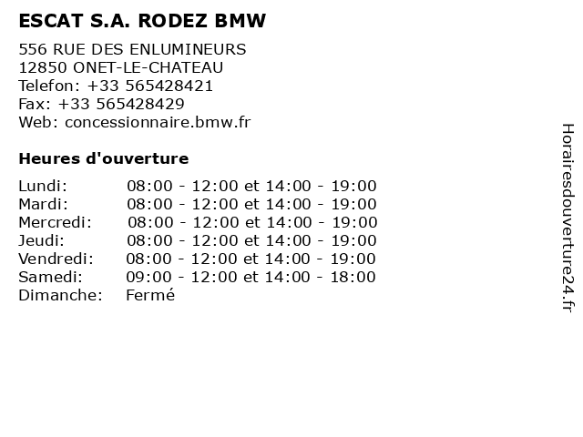 | Lundi | 08:00-12:00 et 14:00-19:00 |