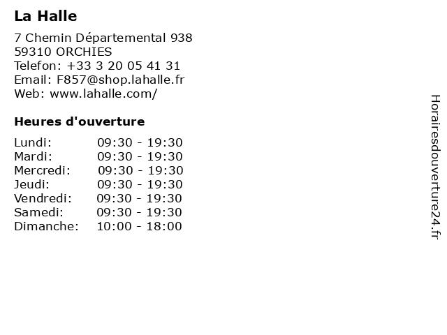 1 La Halle (Distance: 8,16 km) n/a BOIS, 59128 Flers-en-Escrebieux bags, child, clothing, halle, la, lingerie, man, shoes, woman 2 La Halle (Distance: 13,88 km) n/a Mont des Bruyères Rocade, 59230 Saint-Amand-les-Eaux bags, child, clothing, halle, la, lingerie, man, shoes, woman 3 La Halle (Distance: 15,17 km) . Avenue de L'Epinette, 59113 Seclin cafe, chaussures, enfants, halle, homme, la, mode femme, restaurant, service 4 La Halle (Distance: 15,70 km) n/a Rue de l'egalite, 59187 Dechy bags, child, clothing, halle, la, lingerie, man, shoes, woman 5 La Halle (Distance: 16,10 km) 35 ROUTE DE DOUAI, 59810 Lesquin bags, child, clothing, halle, la, lingerie, man, shoes, woman 6 La Halle (Distance: 16,33 km) n/a Boulevard de la République, 59500 Douai bags, child, clothing, halle, la, lingerie, man, shoes, woman |