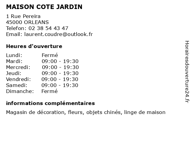 1 Le Jardin Du Pavillon (Distance: 0,26 km) 5 Place du Général de Gaulle, 45000 Orléans du, jardin, le, pavillon 2 École maternelle d'application Jardin des Plantes (Distance: 0,77 km) 1 impasse Joseph Cressot, 45000 Orléans cours, d'application, des, jardin, maternelle, plantes, servicios, école 3 École Primaire Publique Jardin des Plantes (Distance: 0,87 km) 3 Rue Dante Alighieri, 45100 Orléans cours, des, education, jardin, plantes, primaire, publique, services, école 4 Côté Jardin (Distance: 4,54 km) 41 Route Nationale, 45140 Ingré bar, bistro, bistrot, brasserie, café, côté, jardin, restaurant, restauration 5 Au Jardin du Bonheur (Distance: 5,82 km) 74 rue de la Godde, 45800 Saint-Jean-de-Braye alimentation, au, bio, bonheur, du, ferme, fruits, jardin, légumes 6 |