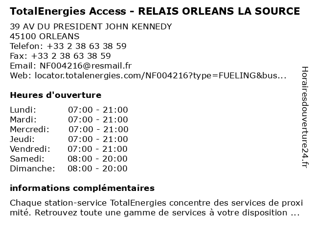 Termes de recherche pour TotalEnergies Access - RELAIS ORLEANS LA SOURCE:relais, la, orleans, access, total, source, gas station, station service, tankstelle, totalenergies |