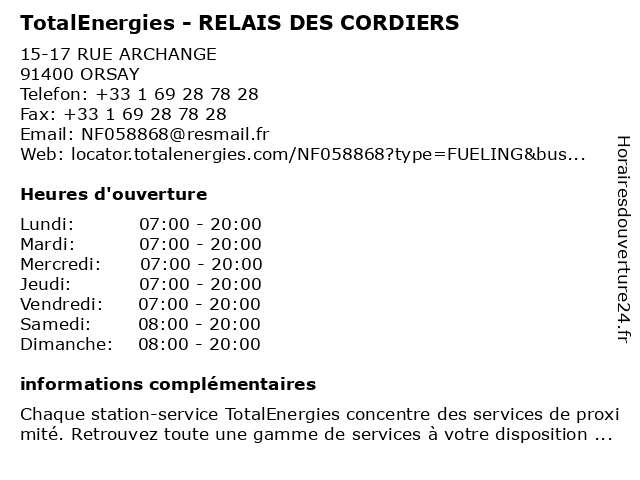 Termes de recherche pour TotalEnergies - RELAIS DES CORDIERS:relais, des, total, cordiers, gas station, station service, tankstelle, totalenergies |