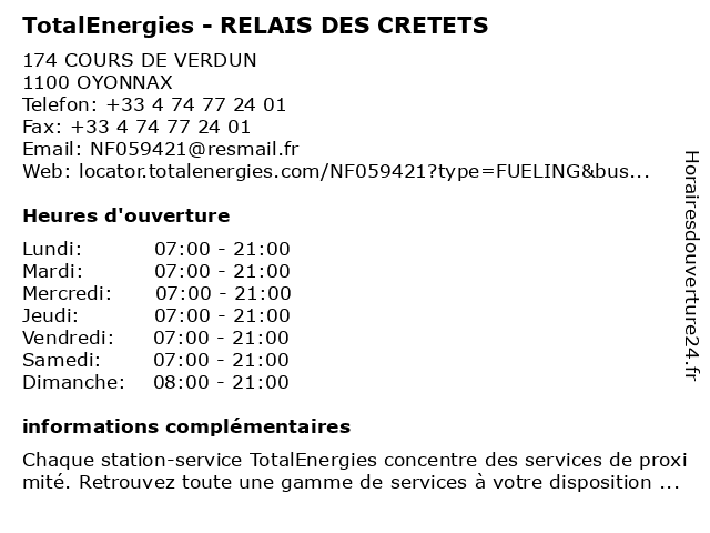 Termes de recherche pour TotalEnergies - RELAIS DES CRETETS:relais, des, total, gas station, station service, cretets, tankstelle, totalenergies |