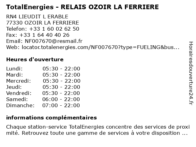 | Dimanche | 07:00-22:00 |