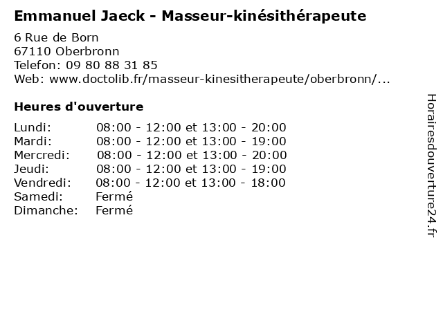 | Lundi | 08:00-12:00 et 13:00-20:00 |