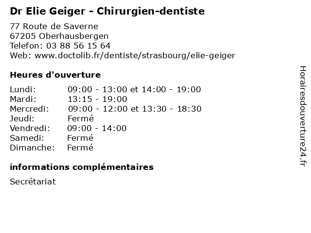 | Lundi | 09:00-13:00 et 14:00-19:00 |