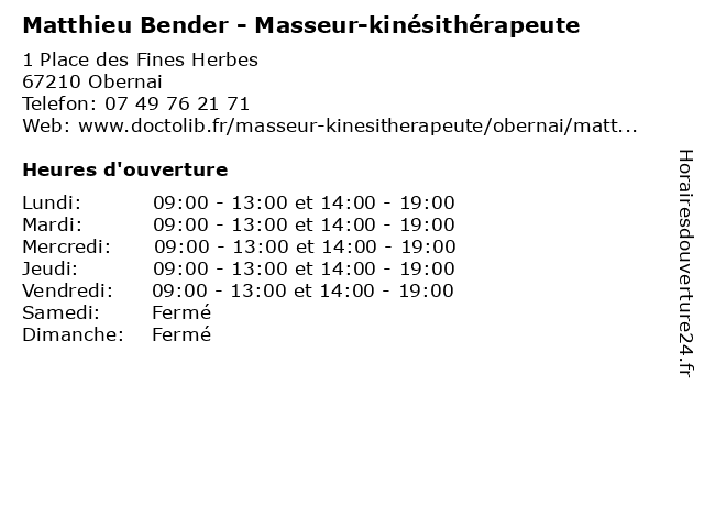 | Lundi | 09:00-13:00 et 14:00-19:00 |