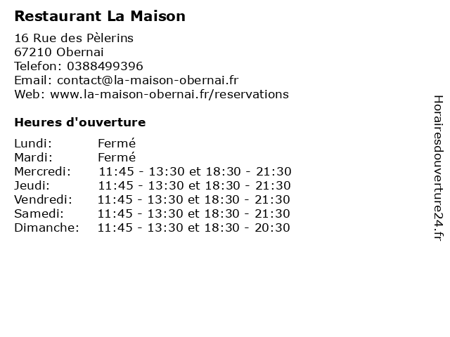 | Lundi | Fermé |
