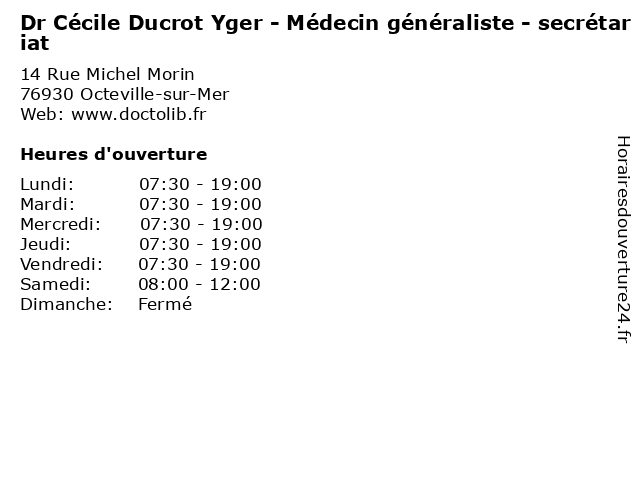 | Vendredi | 07:30-19:00 |