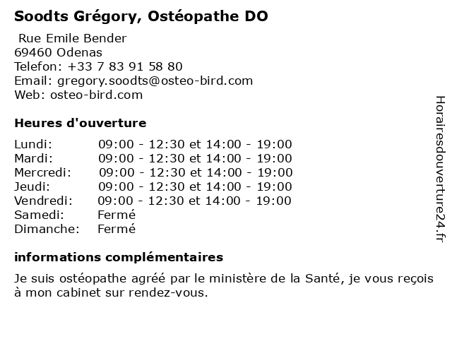 | Mercredi | 09:00-12:30 et 14:00-19:00 |