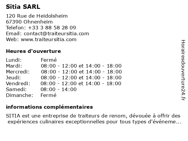 | Mardi | 08:00-12:00 et 14:00-18:00 |