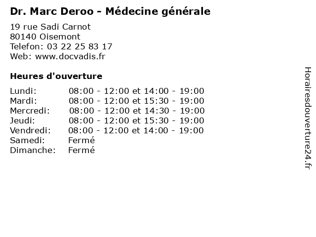 | Lundi | 08:00-12:00 et 14:00-19:00 |